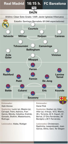 Të dy ekipet përballen me mungesa të shumta në formacionin bazë. Te Barcelona do të mungojnë dyshja e sulmit Lewandowski dhe Raphinha.